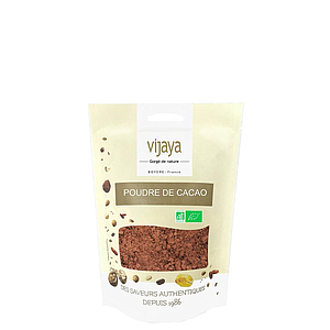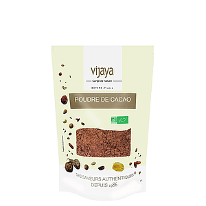 La Poudre de Cacao Maigre VIJAYA possède une couleur brun-rouge profond, un PH alcalin, avec un taux de matière grasse de 10 à 12%. Sa saveur très puissante qui persiste en bouche, et ses qualités aromatiques, vous feront voyager au travers d’expériences aux saveurs corsées.