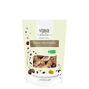 La Figue Protoben VIJAYA est originaire de la Turquie et issue d'un projet bio initié par Good Food Foundation, et certifié équitable par FairTSA. Les différentes figues de Turquie se différencient par leur mode de préparation. Chaque appellation (Baglama, Lérida et Protoben) se réfère non pas à une variété de figue, mais à son mode de préparation. La Figue Protoben est légèrement étirée afin de lui donner des formes courbées qui font penser à celles d’une poire. Elle sera ensuite rangée avec ses consoeurs, à cheval les unes sur les autres.