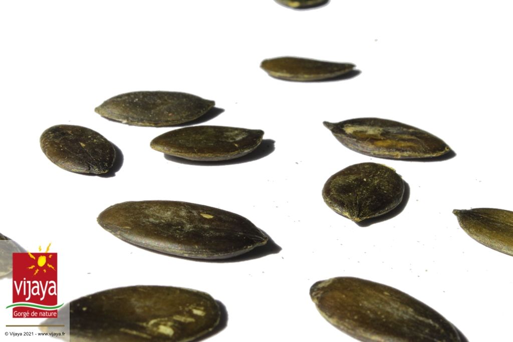 La Graine de Courge VIJAYA, origine Europe, se caractérise par une couleur vert foncée et une forme plate et ovale. Parmi cette gamme, VIJAYA propose une graine de courge française et locale.